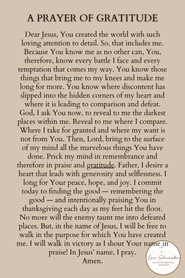 Gratitude helps us see clearly. It realigns our hearts with God’s truth and reminds us that He is enough.